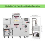 The patented tape shredding chute enables continuous shredding with no downtime, thanks to its “endless bag” system, which ensures optimal uptime and minimizes jams, allowing for throughput of up to 480 tapes per hour.